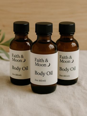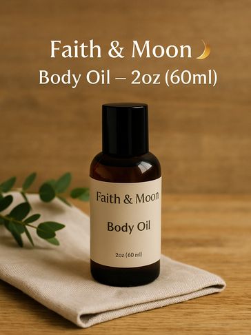 Start your journey with our first product, the Faith & Moon Body Oil (2oz) — natural, plant-based, and crafted for everyday skincare wellness.